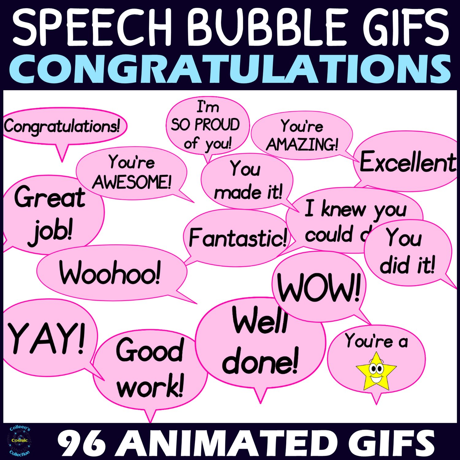 Take your digital resources to the next level by adding movement and interest with these ANIMATED Speech Bubble Clipart images! These congratulatory speech bubble GIFs are fantastic for making your resources more exciting and engaging!