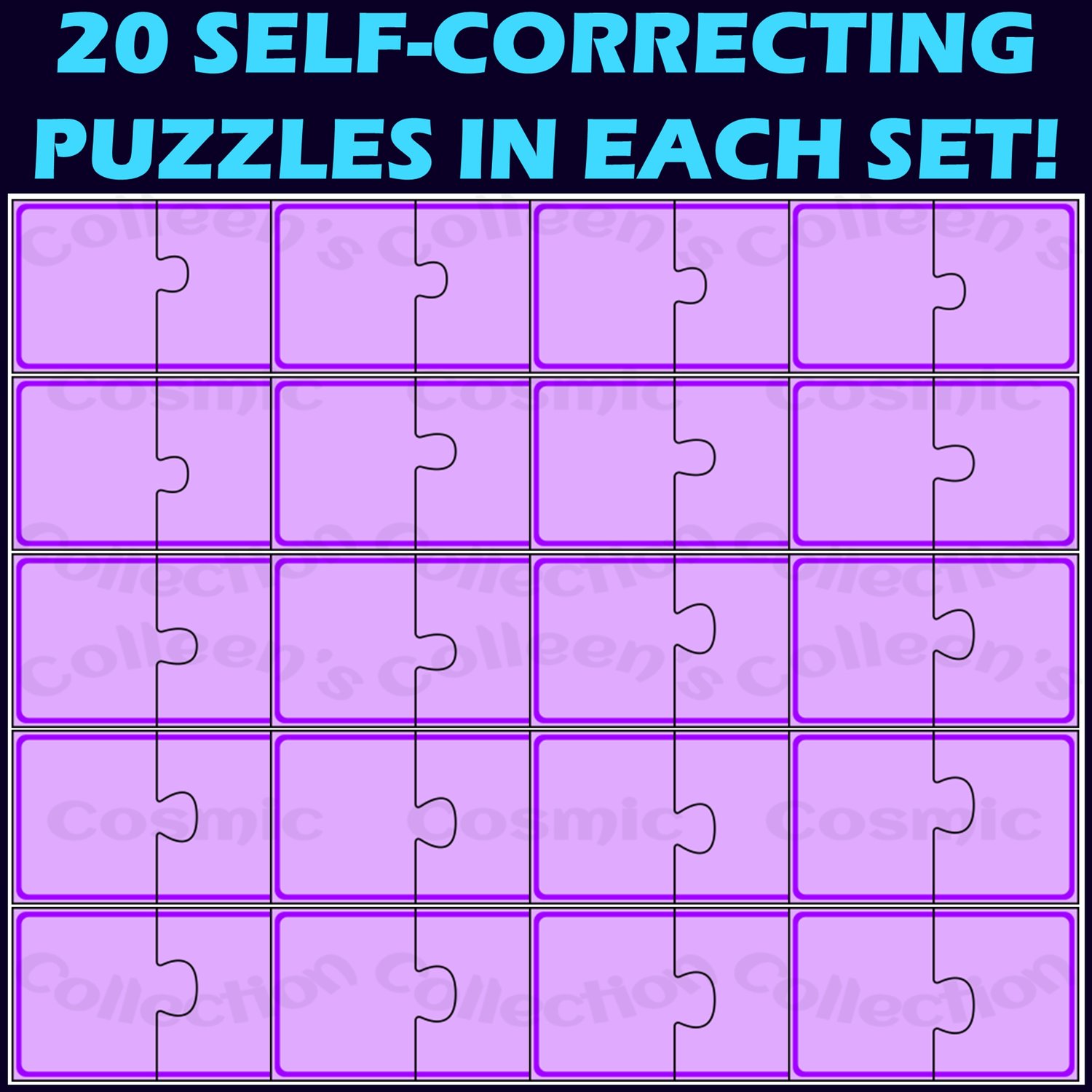 Do you need self correcting templates to use in your puzzle resources? These puzzle template clipart images are just what you need! With high-resolution images for printables and smaller images to use as movable pieces both included, you won't need to look anywhere else! And with 20 UNIQUE SELF-CORRECTING PUZZLES, in a large variety of designs and colors included, you will be spoiled for choice!