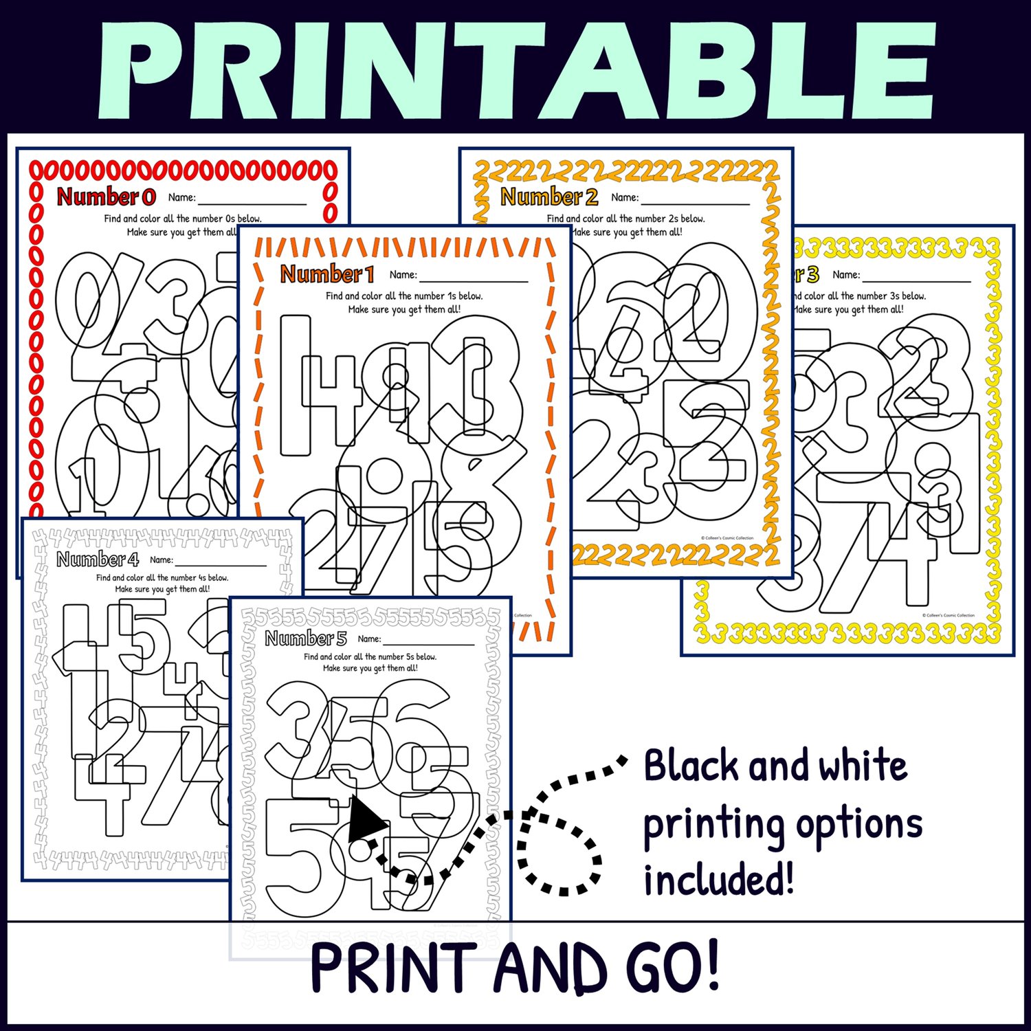 This fun Number Recognition Worksheets set includes: