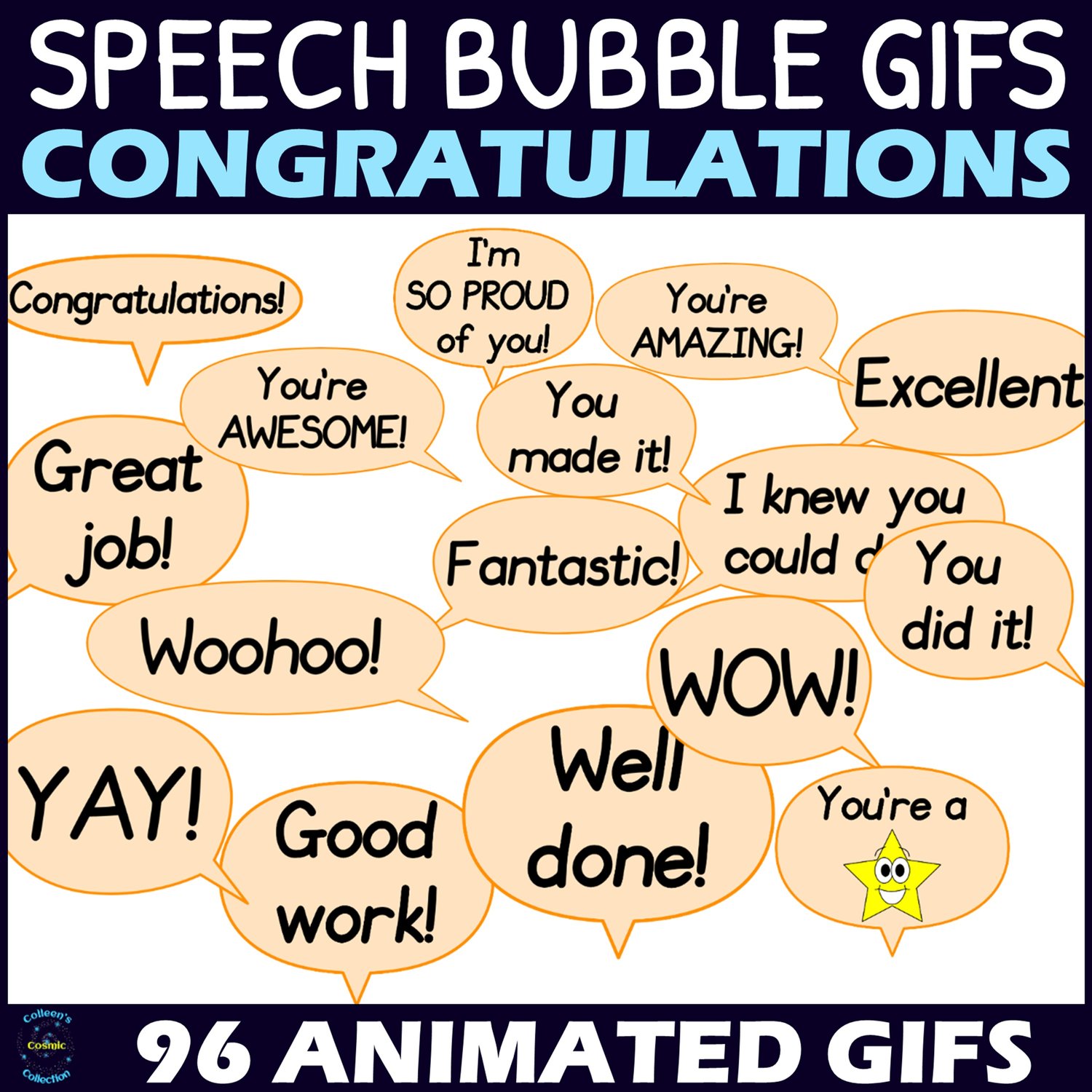 Take your digital resources to the next level by adding movement and interest with these ANIMATED Speech Bubble Clipart images! These congratulatory speech bubble GIFs are fantastic for making your resources more exciting and engaging!